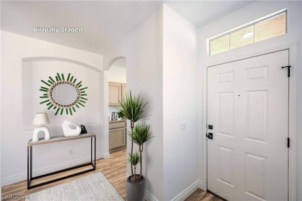 Amazing single story in quiet gated community touching million dollar homes in McDonald Highlands* Beautifully renovated*New designer laminate floors, freshly painted, new blinds & light fixtures*3 bedroom/2 full baths/2 car garage*Sunny kitchen w/eat-in nook and granite counters, new microwave, stove, kitchen sink and faucet*Great room open floor plan featuring cozy fireplace with double arch accents*Separate primary bedroom w/ ceiling fan light, walk-in closet*Primary bath comes complete w/double sinks and separate bath and shower*covered patio and spacious backyard*garage w/workbench*Close to shopping, schools, parks, The District at Green Valley Ranch*Community Park